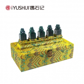 泰山玉雕祥龙福禄寿印章摆件(礼盒)