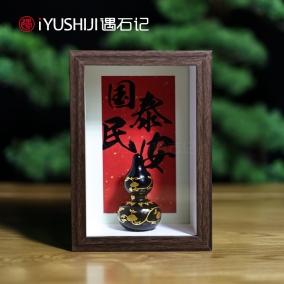 泰山墨玉石敢当宝葫芦创意家居相框摆件