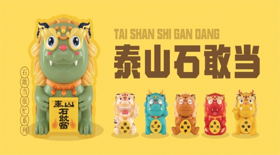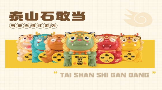 泰山石敢当文化源远流长,是中国传统灵石文化的代表,它代表着人们对平安、幸福的追求。本设计的创作灵感来源自泰山石敢当与瑞兽传说,融合了易经文化五行说,把传统文化故事化、趣味化、萌宠化。本设计共六个款式,分别是泰山石敢当款、旗开得胜款、多财多亿款、无事自在款、喜从天降款、所愿皆得款。