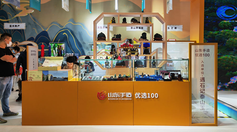 在岱庙天贶殿重檐造型的泰安馆里,遇石记泰山玉雕刻技艺,与众多的山东手造品牌一起,为第三届中国国际文旅博览会的观众奉上了精彩的展览盛宴。