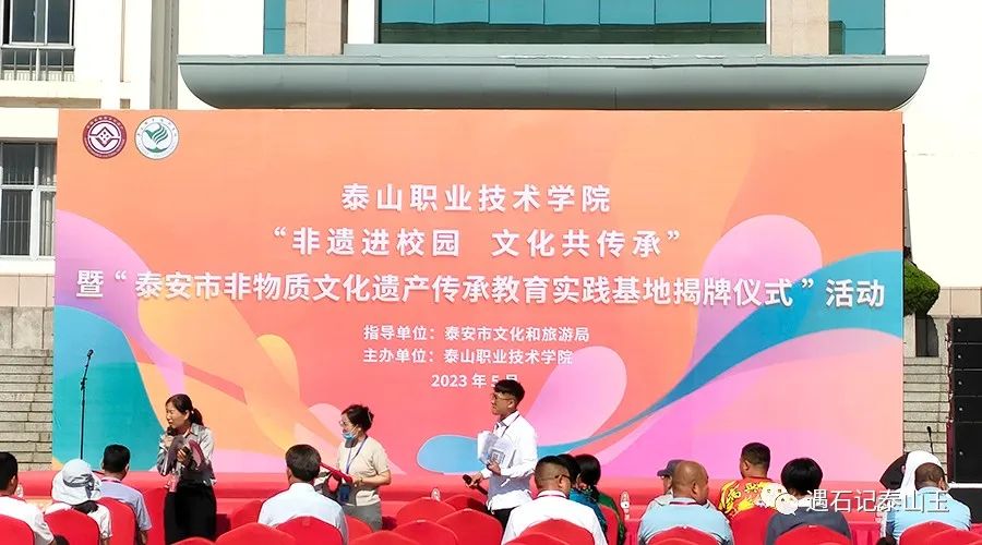 5月23日,由泰安市文化和旅游局指导,泰山职业技术学院主办的“非遗进校园 文化共传承”暨“泰安市非物质文化遗产传承教育实践基地揭牌仪式”活动在泰山职业技术学院开幕。