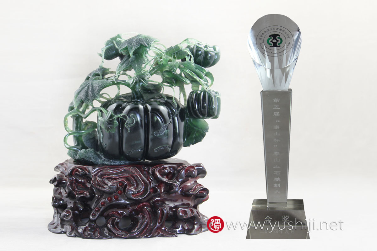 9月26日,由泰安市珠宝玉石首饰行业协会主办的第五届“泰山杯”泰山玉石雕刻大赛(展)暨中国玉石器“百花奖”初选活动在报业大厅二楼会议室正式开幕,本次大赛为期5天,活动包括布展评审、开幕式、泰山玉文化论坛、参观大汶口遗址出土玉器等。在此次大赛中,遇石记公司扬州工艺泰山玉雕作品《富贵南瓜》入围并荣获金奖。