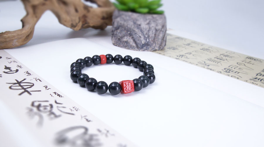 图:泰山墨玉朱砂手串